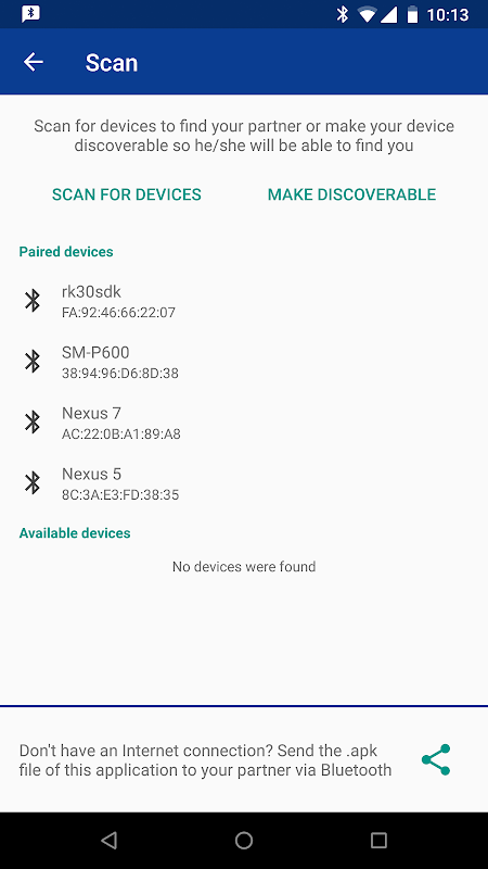 Vos amis ne sont pas d'une connexion Internet pour installer cette application? Vous pouvez facilement partager un fichier .apk de l'application via Bluetooth!