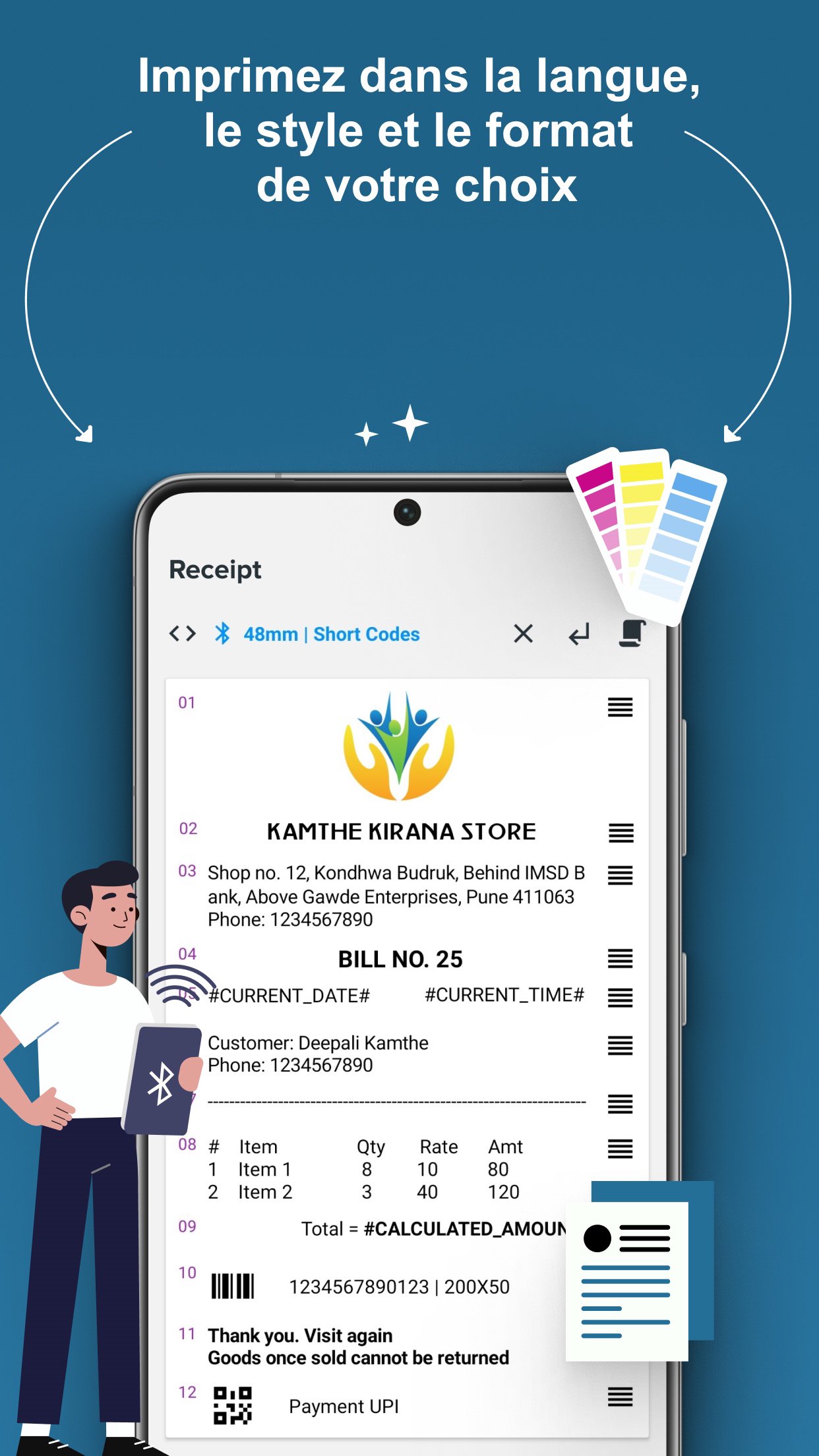 Imprimer des reçus personnalisés sur des imprimantes thermiques Bluetooth/USB