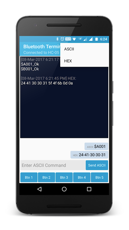 - Par défaut, les données envoyées au format ASCII et il peut être modifié de temps en appuyant sur le bouton de particulier.