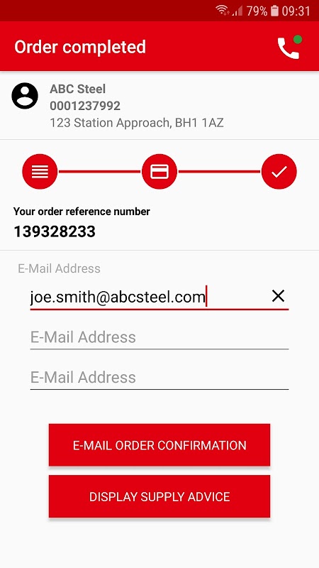• option to email delivery note to the customer