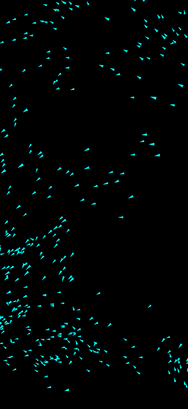 Observez le comportement de la volée de triangles. Vous pouvez la contrôler en touchant l'écran. Mettez la musique et admirez ! Cette simulation en direct est magnifique et fascinante !