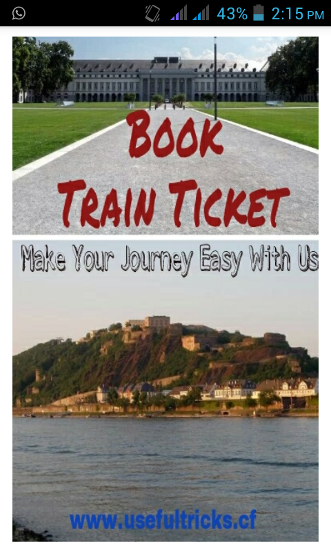 Download thios App on Your Android Mobile Phone & You Can Easily Book Your Confirm Train Ticket in Seconds.. We Provide Certain Websites To Book Your Train Ticket.. You Also Can Get status & Enquiry About your Desired Train..