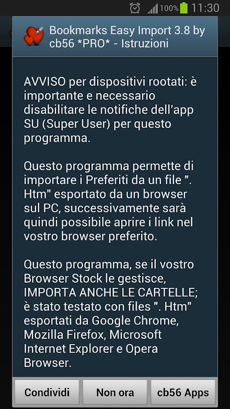 Users of non-rooted devices can open links in their favorite Browser using program's interface; in this scenario the program works with a proprietary database.