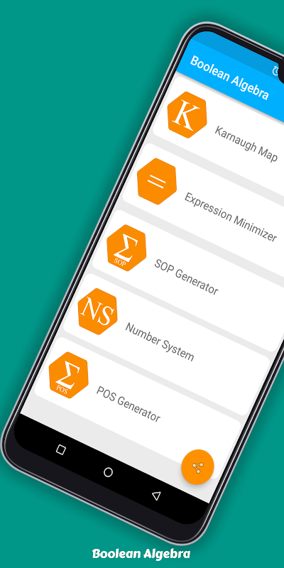 L'algèbre booléenne vous permet d'utiliser votre appareil Android comme solutionneur de problème booléen qui peut résoudre la carte de Karnaugh, minimiser l'expression, générer des SoP et PoS, un schéma de circuit et bien plus encore.