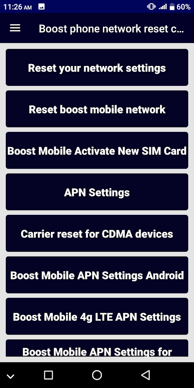 Guide pour les applications de conseils Android pour le code de réinitialisation du réseau téléphonique Boost. cette application ne guide que les applications. Ses applications très utiles.