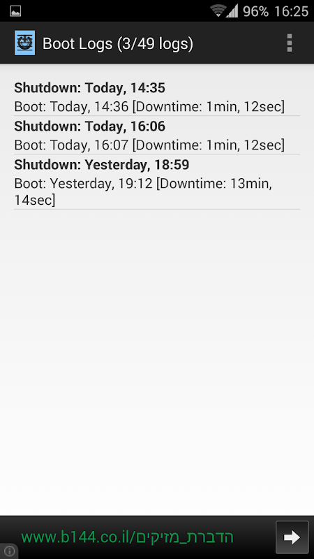 Boot Logs logs your device's boots (and shutdowns), a.k.a. when was your device powered on and off.
