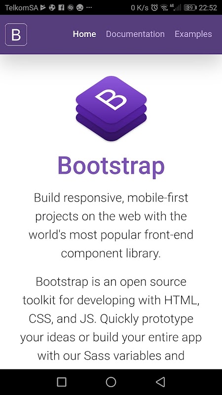 Bootstrap 4 est une application Android native qui contient la documentation la plus récente et un exemple de code pour le framework de site Web réactif le plus populaire - Bootstrap.