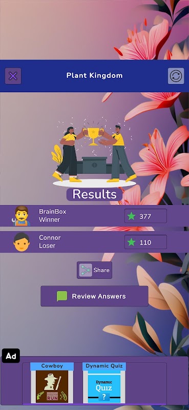 Avec des fonctionnalités telles que des réponses codées par couleur pour un retour instantané, une fonctionnalité multijoueur pour des compétitions internationales et un minimum de publicités pour une utilisation continue, cette application garantit une expérience fluide et agréable sur tous les appareils. Que vous soyez un étudiant préparant un examen, un passionné de nature souhaitant en savoir plus sur la science des arbres ou simplement un quiz éducatif, cette application offre une méthode complète et ludique pour approfondir vos connaissances en botanique.