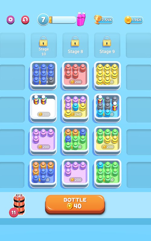 Triez les bouteilles par couleur, collectez, détruisez et gagnez des pièces !
