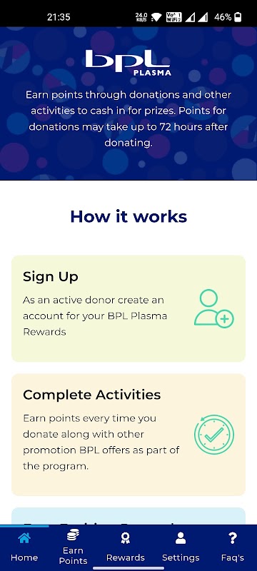 Application de récompenses pour les donneurs de plasma BPL