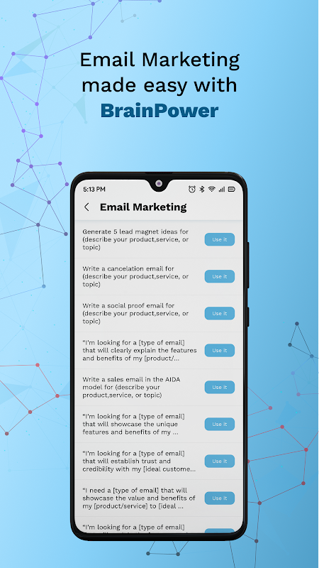 Propulsé par le modèle d'IA de traitement de langage Chat GPT de pointe d'OpenAI, BrainPower Smart AI Chatbot permet de générer du texte de type humain. Cette technologie de pointe a de nombreuses utilisations, notamment la traduction, la modélisation du langage et la production de contenu de qualité pour votre travail.