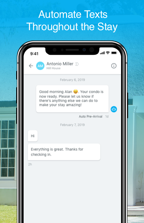L'application de messagerie de Breezeway permet aux opérateurs de location à court terme et de vacances d'automatiser les programmes de communication avec les clients et de fournir plus de services tout au long de chaque séjour. Conçus spécialement pour les prestataires hôteliers, les outils de messagerie de Breezeway facilitent l'envoi de messages en masse, la résolution des problèmes internes, le partage des mises à jour sur l'état des services de maintenance et de conciergerie et offrent aux clients des prolongations de séjour lorsqu'il y a des écarts entre les réservations.
