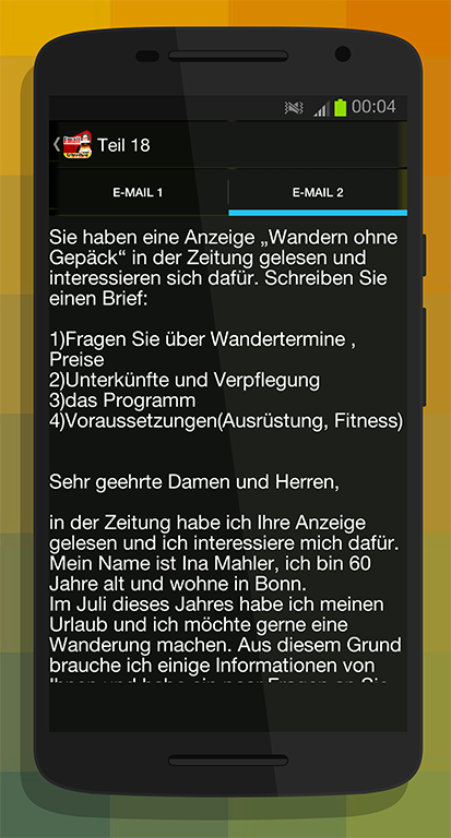 sie können auch mit dieser app jeder Deutsch lernen niveau A1 A2 B1 B2. Sie schreiben einen brief einfach und richtig mit dieser app schreiben zur Prüfung Zertifikat Deutsch A1