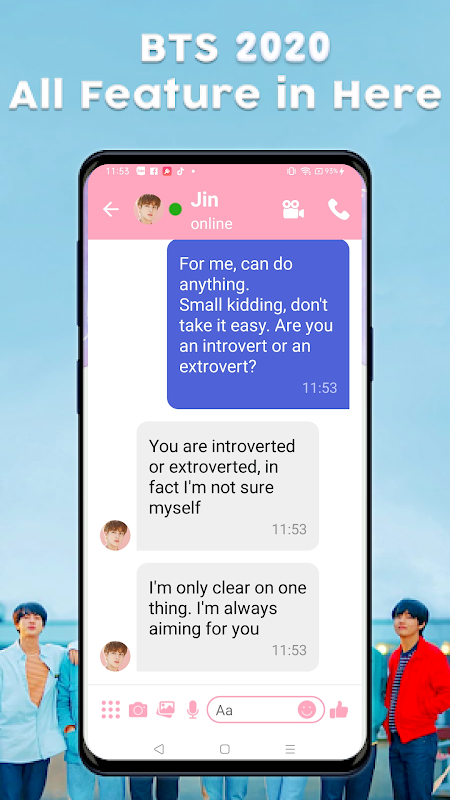 BTS Video Call - BTS Messenger 4 tiất cả mọi thứ như một ứng dụng nhắn tin bình thường, sẽ cho bạn cảm giác thật thân thuôc như đang nói chuyện thật với thần tượng của mình vậy