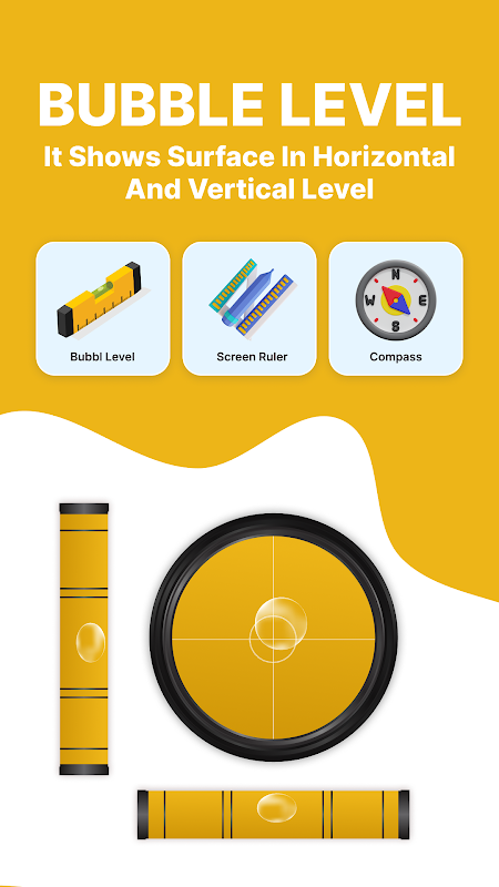 L'application Bubble Level est un outil puissant tout-en-un conçu pour les utilisateurs qui ont besoin de mesures précises et d'une aide à l'alignement dans leurs tâches quotidiennes. Combinant la fonctionnalité classique d'un niveau à bulle avec la commodité d'une boussole et d'une règle d'écran intégrées, cette application est parfaite pour tous ceux qui travaillent dans la construction, les projets de bricolage, la photographie, ou qui essaient simplement de mettre les choses au clair et de niveau dans leur maison ou leur bureau. .