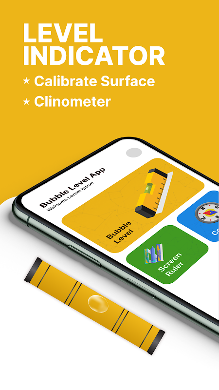 Niveau à bulle : La fonctionnalité principale de l'application est le niveau à bulle traditionnel, qui vous permet de mesurer l'angle des surfaces pour vous assurer qu'elles sont parfaitement de niveau ou d'aplomb. Que vous accrochiez des tableaux, installiez des étagères ou assembliez des meubles, le niveau à bulle fournit un retour instantané et précis pour vous aider à éviter les erreurs. L'interface intuitive affiche la position de la bulle dans un simple cadre vertical ou horizontal, permettant de savoir facilement quand un objet est parfaitement aligné.