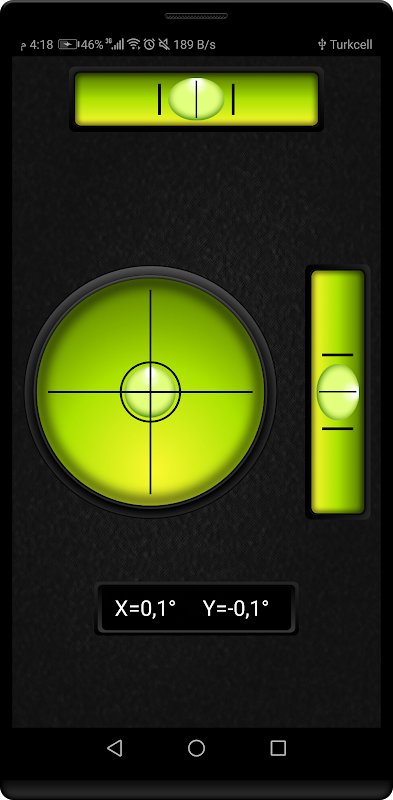 L'application Android de niveau à bulle (niveau à bulle) essaie d'imiter le niveau du monde réel et affiche les données comme le ferait n'importe quel indicateur de niveau en œil de taureau.