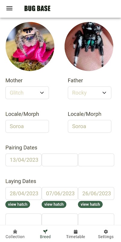 - Créez une vaste collection en ajoutant des invertébrés avec leur nom, leur sexe, leur espèce, leur nom commun, les informations sur l'éleveur d'origine et plus encore.