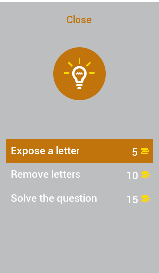 3. You can use button HINT when you're stuck by using coins earn from previous levels, you can use either expose letter, remove letters and solve the question.
