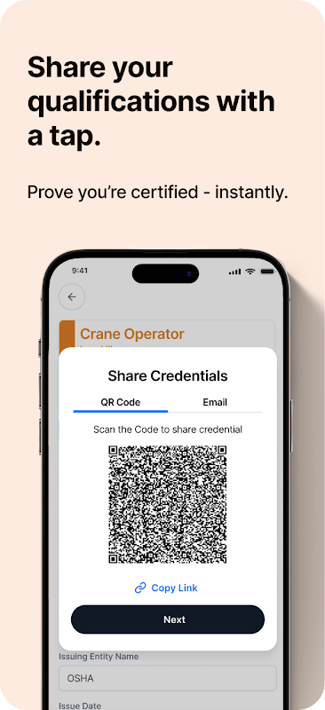 Votre portefeuille numérique pour les informations d'identification de construction - sécurisé, intelligent, simple.