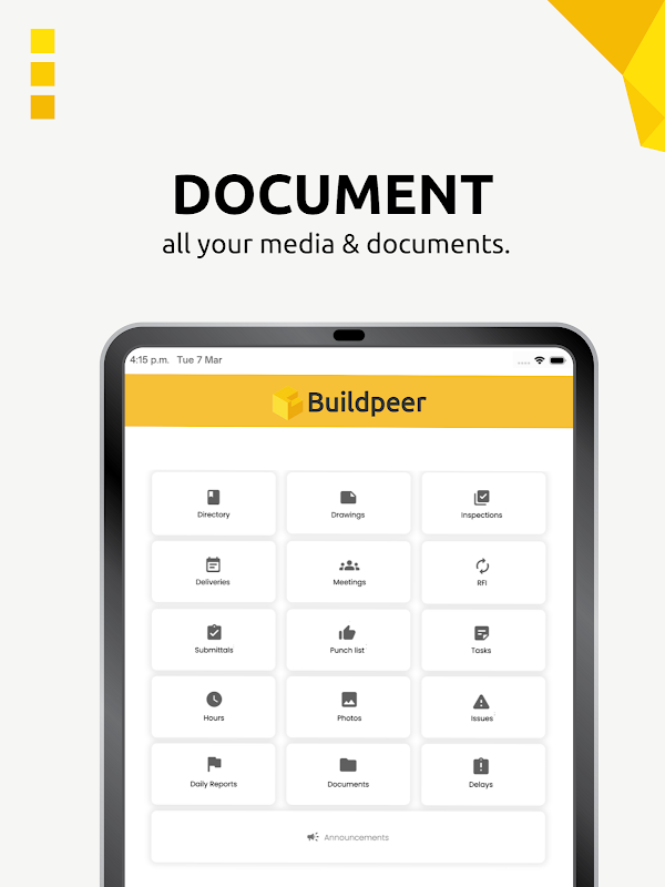 Améliorez votre processus de planification et de construction avec Buildpeer - la solution ultime pour gérer vos tâches sur le terrain et au bureau. Notre logiciel de gestion entièrement intégré rationalise vos projets de construction, les rendant plus faciles à gérer et à contrôler.