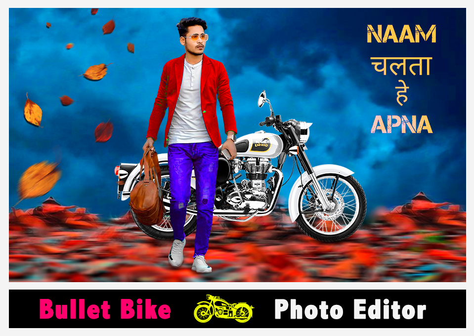 Bullet Photo Editor has wonderful collection of Bullet photo backgrounds and stickers. People like it for its royal look. It is a special type of bullets and best for smooth and comfortable riding. It is having highest cc and highest pickup capacity in two wheeler varieties.