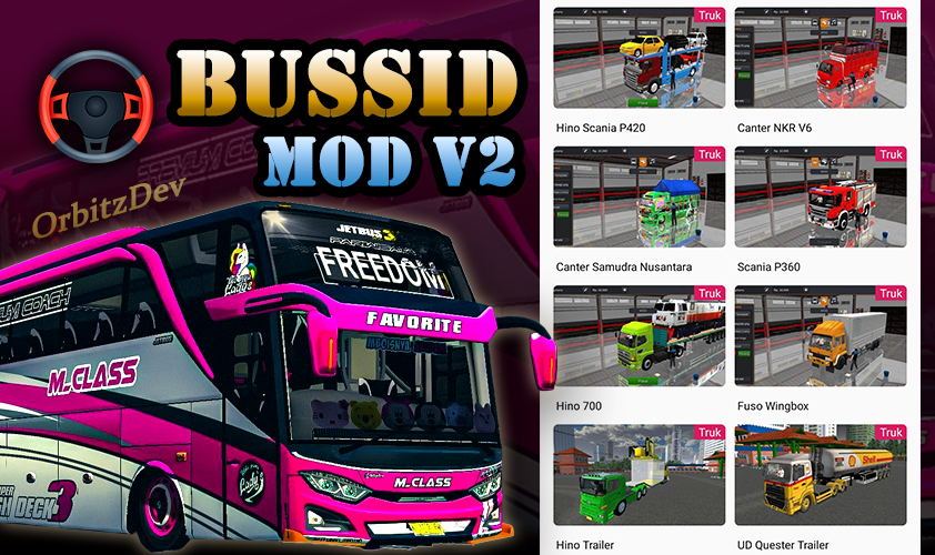 Tersedia berbagai jenis MOD kendaraan mulai dari Bus, Truk, Mobil dan Motor. Bus Simulator Indonesia Mod V2