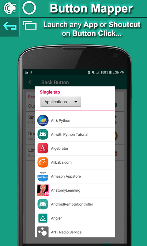 - attribuer une action Retour à n'importe quel bouton, c'est-à-dire augmenter le volume, diminuer le volume ou le bouton récent