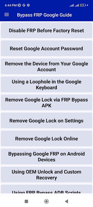 Cette application doit contourner le guide Google FRP et la méthode simple. Je pense que cette application dont vous avez besoin. Nous espérons que vous trouverez l'application utile. Si vous aimez cette application, donnez-lui cinq étoiles.