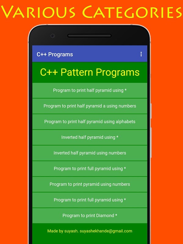 Par conséquent C ++ programmes toujours vous aider dans la programmation, comme c ++ est une langue de plus en plus, nous devons nous rappeler toutes les techniques et etc, ce qui est facile quand vous avez cette application dans votre poche.