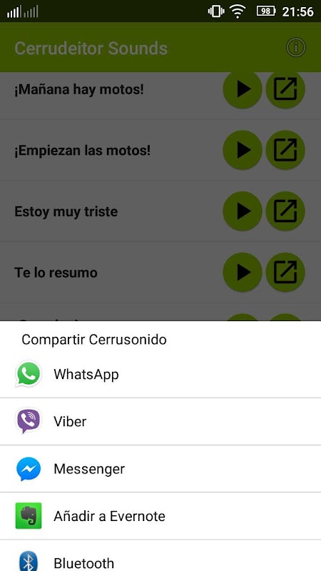 Y ahora, por el módico precio de gratis y sin anuncios, puedes escuchar muchos de sus sonidos, ruidos, frases, expresiones, tonterías, mentiras y verdades, y compartirlas fácilmente por WhatsApp y otros sistemas de mensajería compatibles.