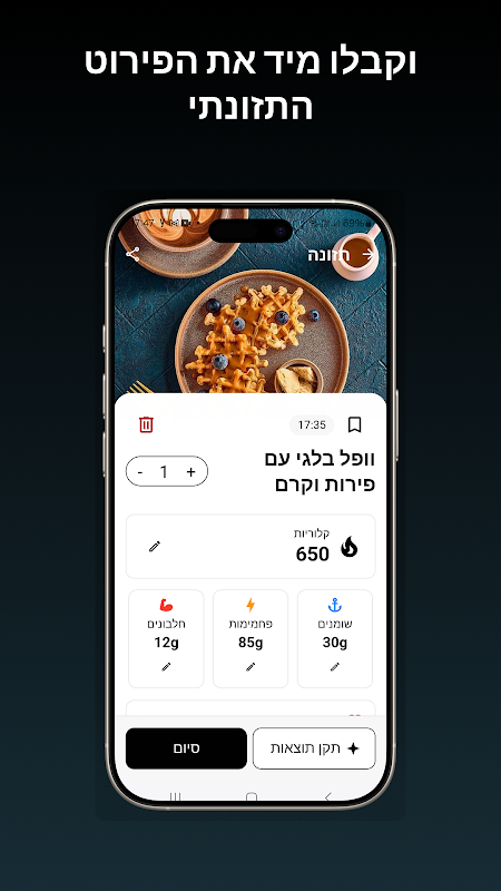 🔹 Scannez et insérez les aliments en un clic - pas besoin de deviner, notre IA reconnaît immédiatement votre plat.