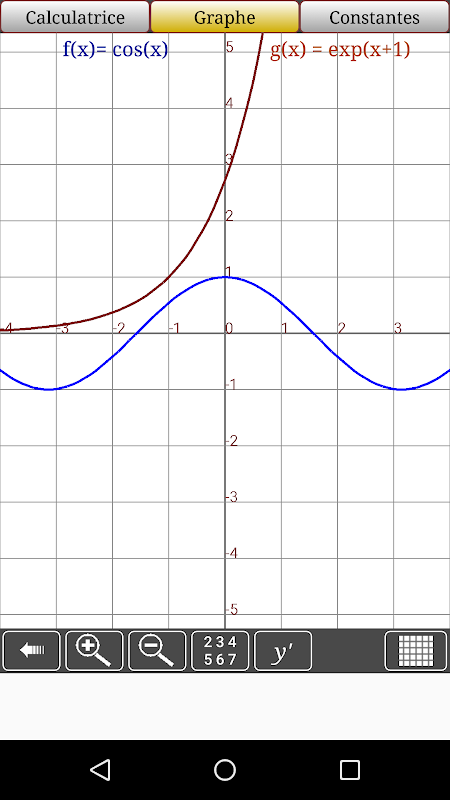 l'application permet de tracer votre équation (fonction) mathématique et sa dérivé, puis d’afficher les valeurs par pas de 0.1