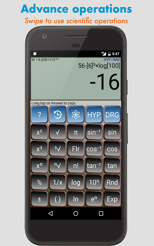 Cette application est conçue pour vous aider dans l'exercice de simple ainsi que des calculs mathématiques scientifiques d'une manière facile. L'application se compose d'une «calculatrice standard» avec des opérations d'avances à défilement / scientifiques. Il vous permet de choisir des valeurs constantes scientifiques standard et de les utiliser dans les calculs. Vous pouvez copier l'expression ainsi que la réponse de cette calculatrice et coller n'importe où en dehors de l'application.