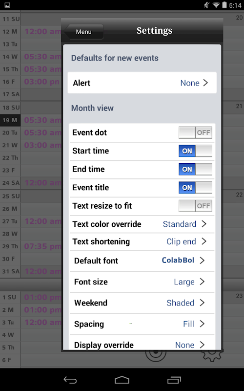 7. Customize the calender fonts when events are displayed. Also applicable for days, dates, weeks and holidays.