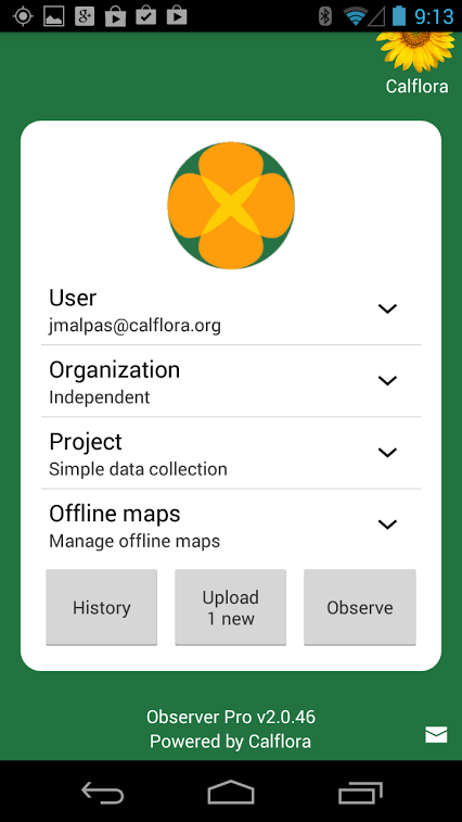 Utilisez CalFlora Observer Pro pour enregistrer les observations de plantes sauvages en Californie en utilisant votre téléphone ou tablette, puis les télécharger sur le site Calflora.org. Elles peuvent inclure des photos, coordonnées GPS, des notes et d'autres informations.