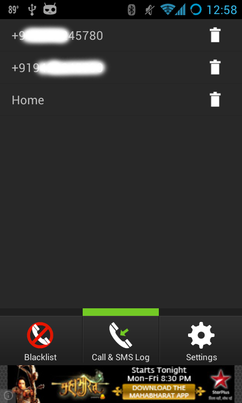 This application blocks both unwanted calls and SMS, and also helps to manage a blacklist. Its easy and lightweight,does not consume any of your device's battery power.