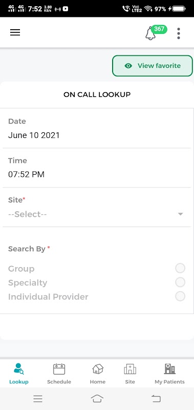 L'option de fourniture d'application permet de «rechercher» en fonction des hôpitaux sélectionnés et du groupe. Cela aidera les secrétaires à savoir qui est en disponibilité à un moment donné.