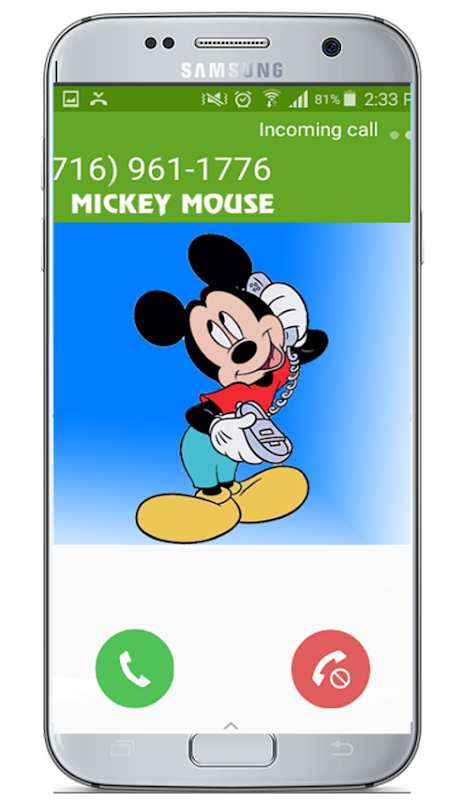 have fun with this real call Mickey Mouse moves in Calling Prank help you to select a caller from your contacts list or enter a new contact log rock . One can also choose the time to call and set some false calls for a different time .