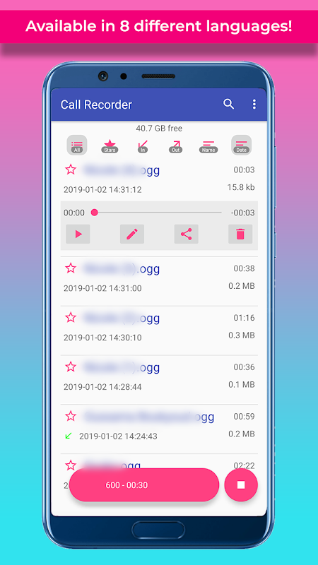 - L'appli déclenchera automatiquement l'enregistrement une fois que vous recevez ou émettez un appel.