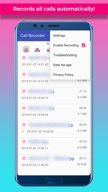 Enregistreur d'appels est une appli qui vous permet d'enregistrer vos appels téléphoniques entrants et sortants.