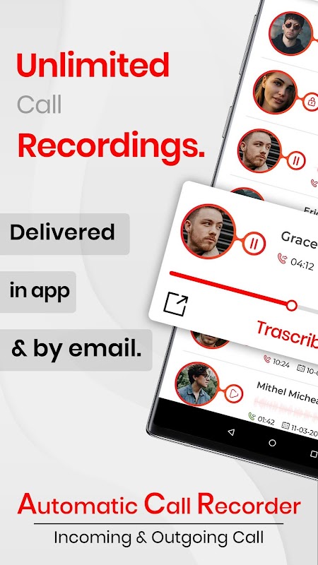 Automatic Call Recorder Latest let you record phone calls and manage recording files in a smart way with features like share, play, delete and rename call recordings, multiple audio format, add to favorite, voice recorder etc. Never worry about losing important call recordings anymore. Available globally to help thousands of users to record phone calls. Automatic call recorder, best voice recorder for Android. Automatic Call Recorder No Ads Please download call recorder, you can record all incoming calls and outgoing call with quality. Auto Call Recorder App is automatic and very reliable. With this Auto Call Recorder, you will no longer have to take notes of telephone conversations, you will not need to memorize addresses or phone numbers. You just have to go to the inbox and listen to the recordings of your phone calls.