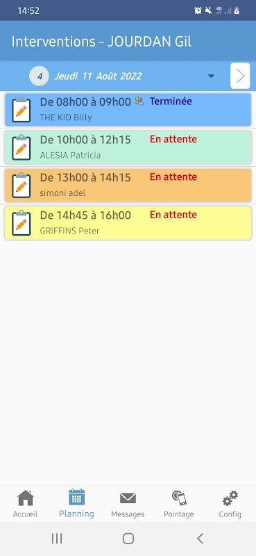 Votre intervenant dispose également sur son smartphone de son planning, et de fonctions d’interactions et de communication pour optimiser son intervention.