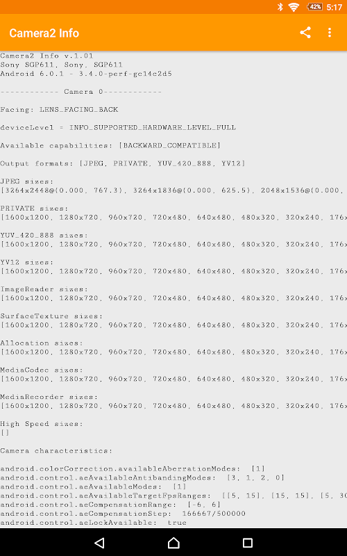 Camera2 Info est une application de diagnostic qui dépotoirs d'informations sur la caméra de votre appareil (s) tels que le niveau de soutien, les capacités, la taille d'image et la durée selon le type de format. L'application utilise l'API Camera2.