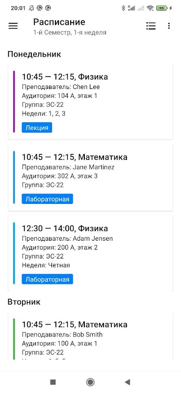 — Расписание занятий;