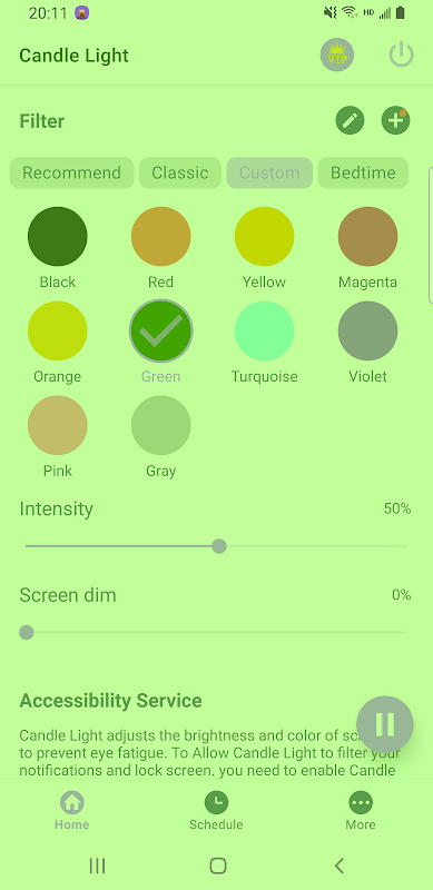 Afin de filtrer également vos notifications et l'écran de verrouillage, l'application peut demander d'activer le service d'accessibilité CandleLigh. L'application utilise ce service uniquement pour mieux filtrer votre écran et ne collecte aucune information personnelle. Vous pouvez autoriser ou annuler à tout moment.
