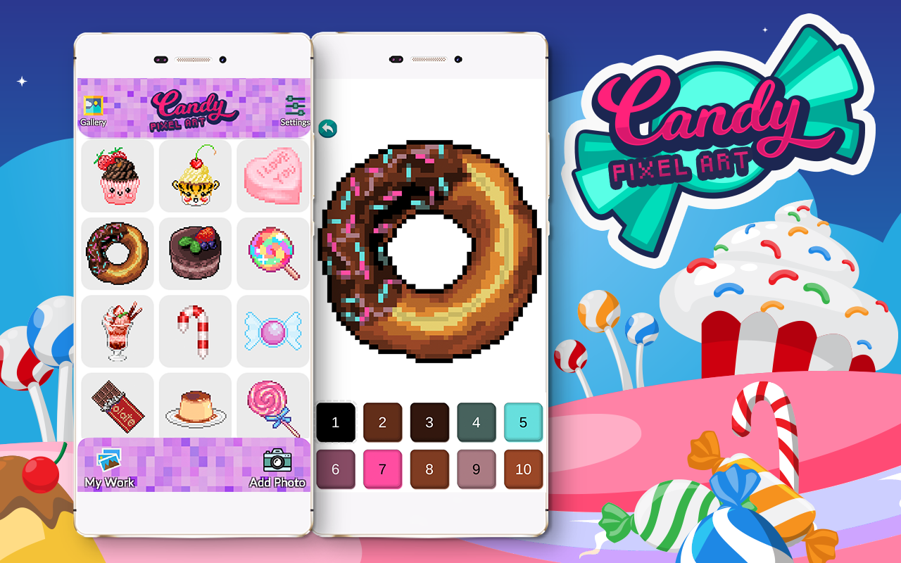 Téléchargez Candy Pixel Art gratuitement et dites adieu à vos soucis pendant quelques heures en coloriant les pixels.