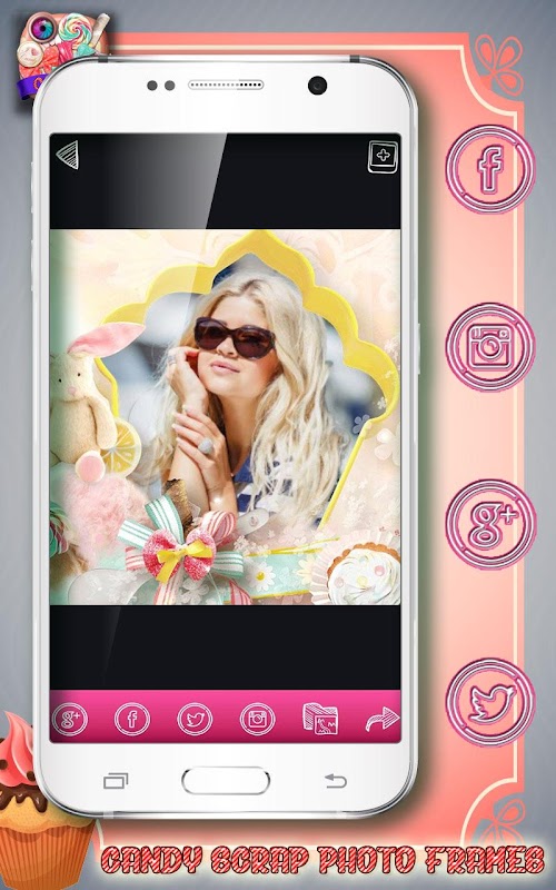 Working in this "candy camera" photo editing app is easy and it will take only a couple of minutes and a few finger moves to make amazing photo art! Go on and check out all the cute pic frames in many shapes, sizes and colors and combine them with girly scrapbook patterns and decorations to create lovely picsart right on your smartphone! Don't forget that all photos edited in ★Candy Scrap Photo Frames★ mobile app can be stored on your phone and used as candy wallpaper or shared with all your friends on Facebook, Instagram and Twitter, so check it out now and show off your amazing photo editing skills! Let the photofunia begin today!