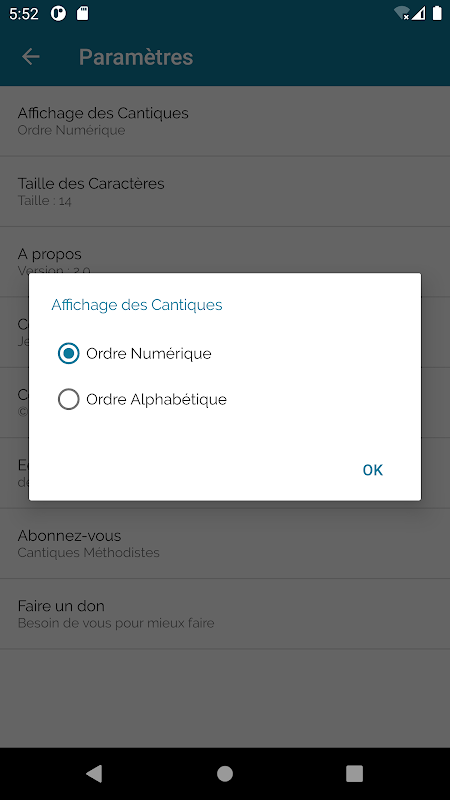 - Personnalisation de l'affichage (Taille et Ordre des cantiques)