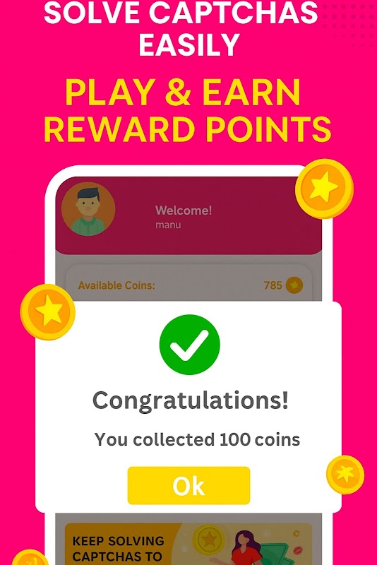 Si vous aimez les petites activités sur votre téléphone, cette application de saisie de captcha est le meilleur moyen d'utiliser votre temps libre pour vous amuser et obtenir des récompenses. Tapez, jouez et collectez des pièces — le tout dans une seule application !